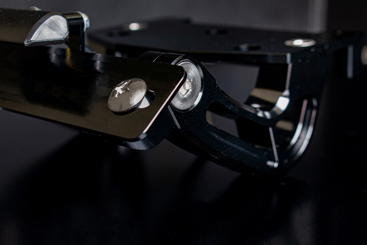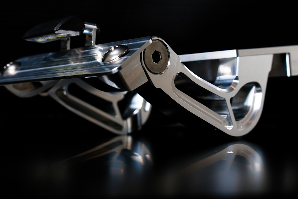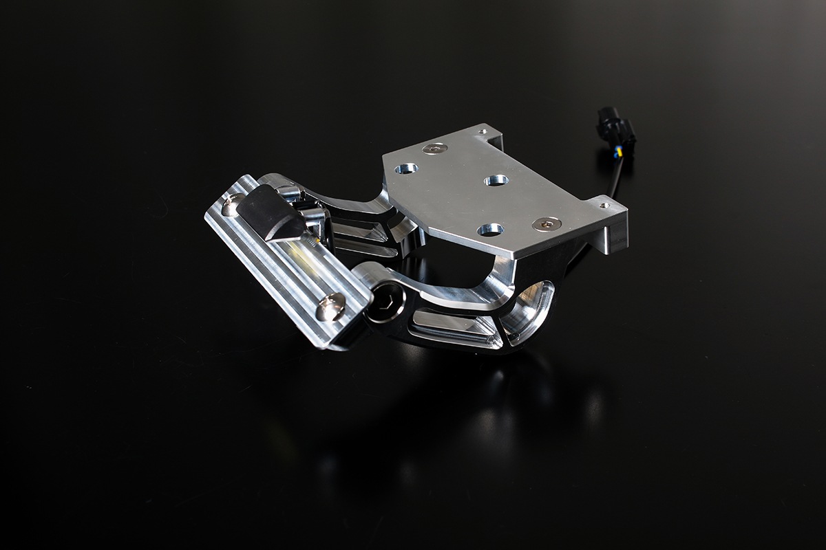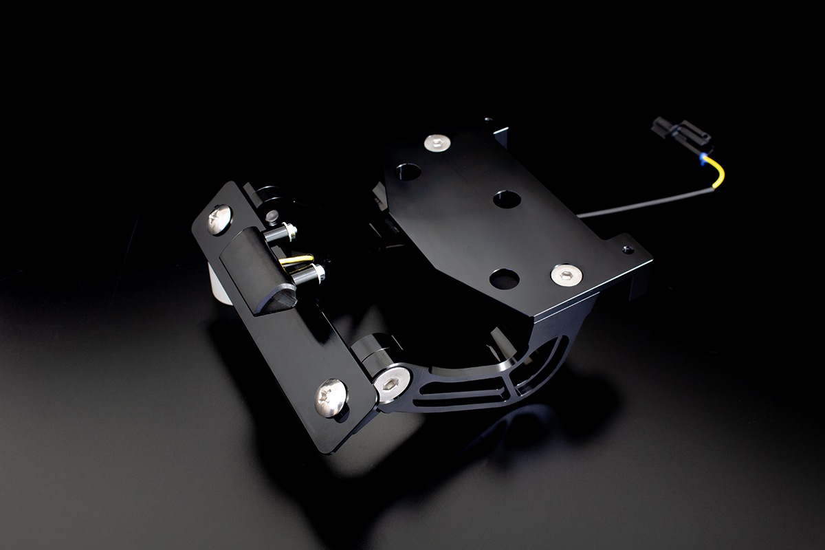 ナンバープレートステーは分割構造を採用し、角度調整が可能。
